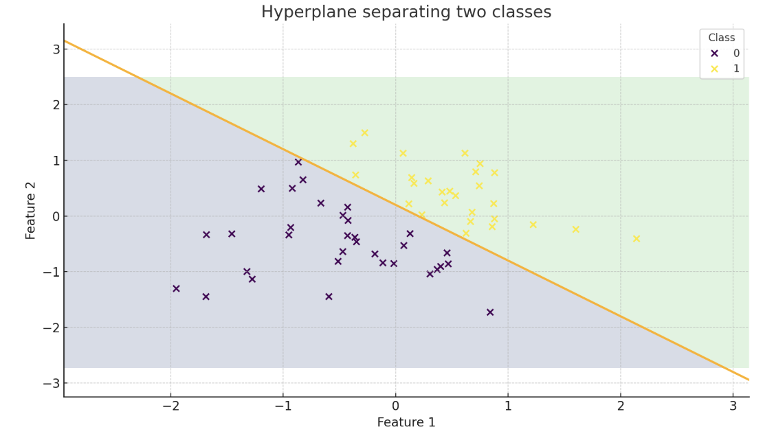 *A decision boundary separating two classes (represented by the orange line).*