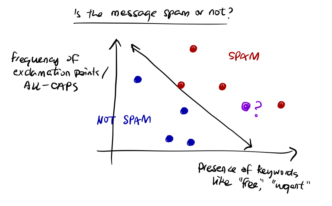 *A classification problem that seeks to answer "Is the message spam or not?" by classifying data into SPAM (+1) and NOT SPAM (-1).*